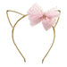 Sparkle Mesh Bow on fabric wrapped metal headband with kitty ears.