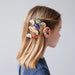 We adore this bright and cheerful little pack of clips! Four little rainbows made from hessian style fabric,intricately embroidered in bold colours of red/orange, mustard, green and blue are attached to grosgrain ribbon covered clic clac clips in the same bold, primary colour palette. Bright and colourful enough to cheer up any outfit and add that important touch of colour and style!