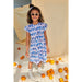 Enchanting dress, classic cut, with ruffled sleeves made of soft organic cotton in a stylish print and great colours. Perfect for summer