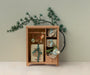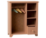 This large wooden wardrobe is perfect for a child’s playroom, ready to store and display miniature clothes or treasured keepsakes. Designed to be too large for a dollhouse, the closet features a small rod with three hangers for your toy's favourite outfits, three open shelves for showcasing tiny objects, and a pull-out drawer for keeping extra accessories tucked away.