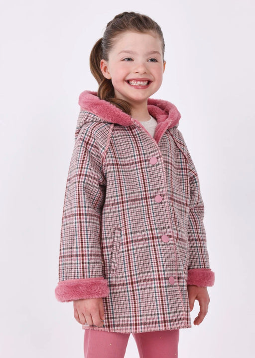 MayoralOriginal price $99.00 - Original price $99.00Original price$99.00$99.00 - $99.00Current price $99.00Pink, blue and ivory check coat for girls by Mayoral, made in soft brushed flannel. It is lined in plush faux fur for warmth, and fastens with silv...