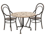 Invite your friend for Sunday supper at the dining table. The round table comes with 2 sturdy metal chairs. The table and chairs fit in the dollhouse, where rabbits and bunnies in size 1 and 2, and Teddy family can be seated.