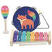Music set from Vilac with 4 percussion instruments, poetically illustrated by Andy Westface in all the colours of the rainbow. The set consists of a xylophone, a triangle, maracas and a tambourine. They are all great instruments to introduce children to rhythm, develop listening skills and creativity.