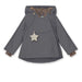 Classic MINI A TURE winter jacket. 100% wind and waterproof, breathable and warm enough for a very cold winter. Opens at the front by a hidden slanted zipper. The hood is detachable and can be adjusted with an elastic string to keep the wind out. Inside, the waist can be adjusted.The snow cuffs at the wrist are made to let the thumbs out. Sizes up to and including size 86 cm (18m) have a rib around the neck, while the larger sizes have a regular collar.