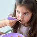 Finger indents on the ergonomically designed handles provide excellent guidance for kids to hold the fork and spoon; hence, the kids may easily apply pressure through their index finger. The handles are made of soft, textured silicone that is easier for kids to grip comfortably