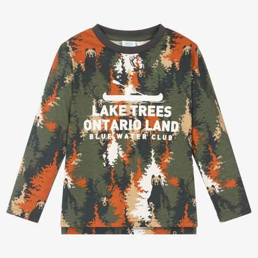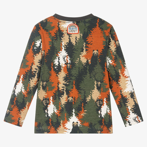 BoboliOriginal price $39.00Original price $39.00 - Original price $39.00Original price $39.00Current price $9.99$9.99 - $9.99Current price $9.99Khaki green and rust orange cotton top for boys by Boboli. Bringing out an adventurous theme, this top has an all-over forest print, with bears, wo...
