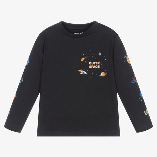 MayoralOriginal price $28.00Original price $28.00 - Original price $28.00Original price $28.00$14.00 - $22.40$14.00 - $22.40Current price $14.00Navy blue sustainable cotton top for boys by Mayoral, with a colourful print of planets on the front and sleeves. It is made in comfortable jersey,...
