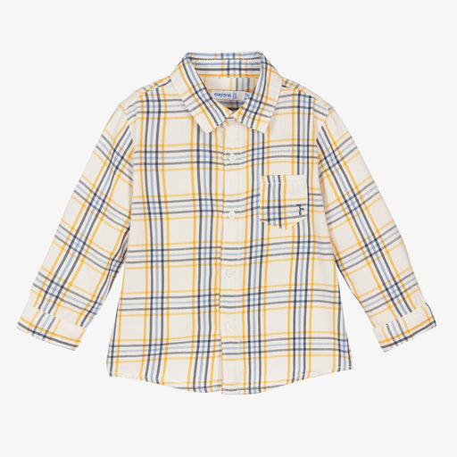 MayoralOriginal price $39.00Original price $39.00 - Original price $39.00Original price $39.00Current price $19.50$19.50 - $19.50Current price $19.50Cotton check shirt for little boys from Mayoral, in ivory, blue and mustard yellow. Made in soft twill, this comfortable top has button fastenings ...