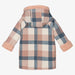 Pink, blue and ivory check coat for girls by Mayoral, made in soft brushed flannel. It is lined in plush faux fur for warmth, and fastens with silver metal poppers. Stylishly finished with exposed seams, the coat has front pockets and a fixed hood trimmed in matching faux fur.