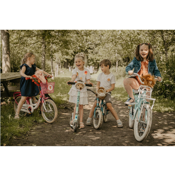 Turn your scooter or bike into a real friend with this fun animal head for the handlebars. This highland cow would love to go out with you! These super soft heads can easily be applied with velcro to your handlebars.